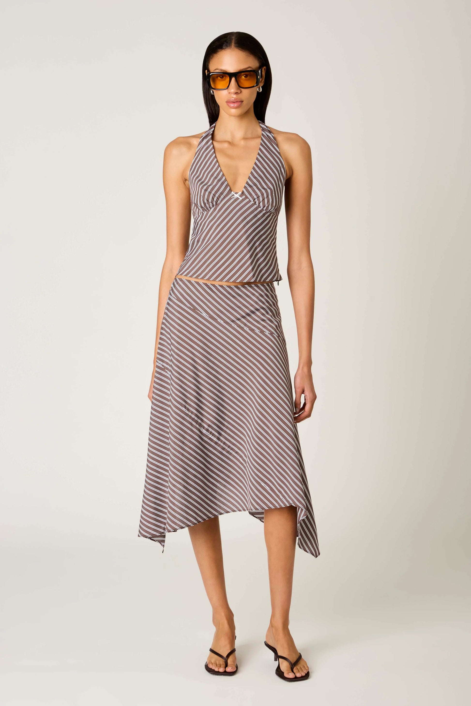 The Bronson Skirt brings movement and shape together with an A-line cut and asymmetric handkerchief hem. Designed to sit at the mid-rise waist, the midi length makes it easy to dress up or down. A clean side zipper keeps the finish sharp, while the unlined construction keeps the silhouette light and versatile. Style it with fitted knits or tucked blouses for a sleek, balanced look.