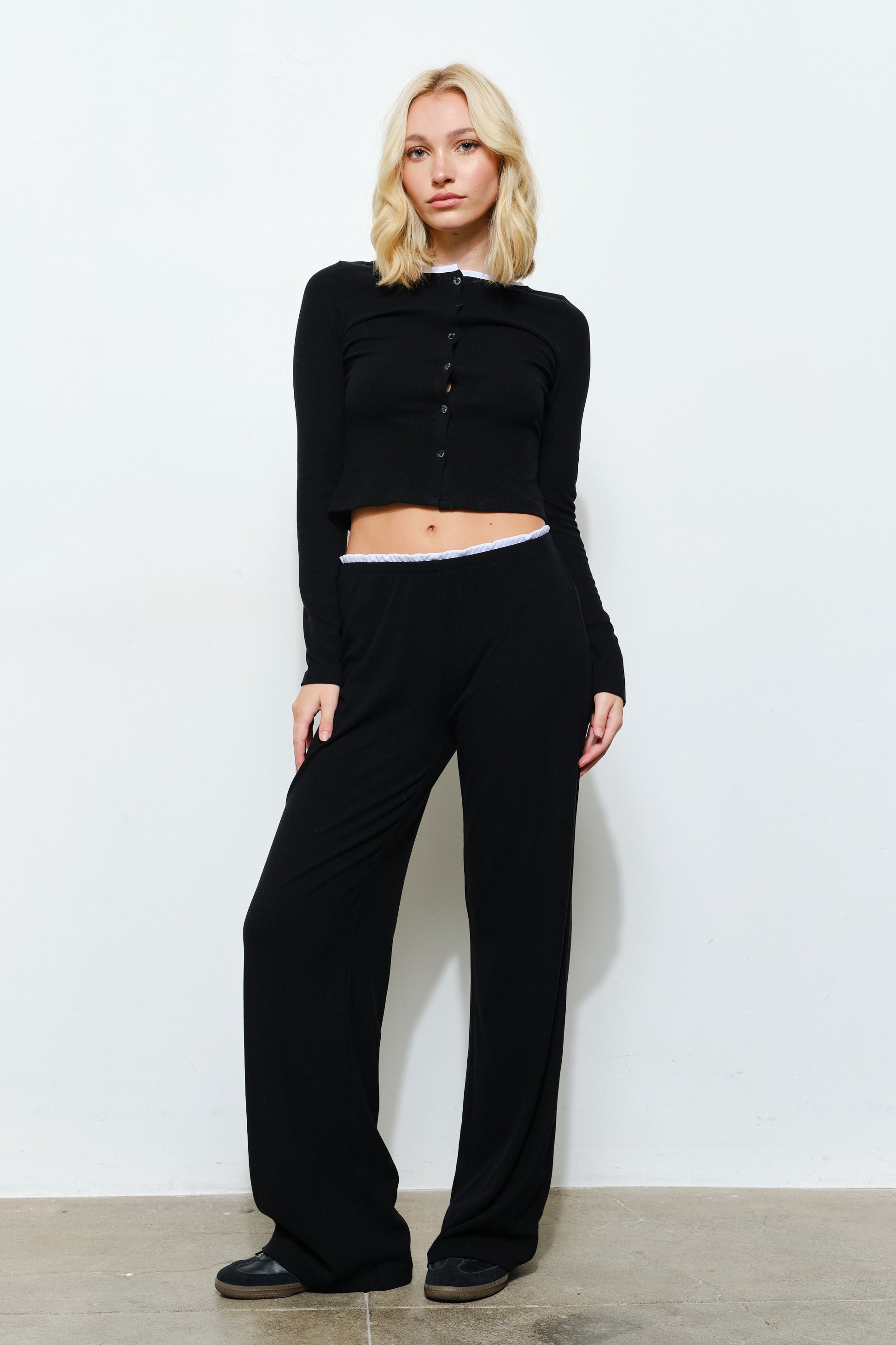 Experience ultimate comfort and chic style with the Sunny Ribbed Knit Top. This cozy essential is crafted from soft, stretchy ribbed knit and features a flattering front button closure and contrast hem detail. With long sleeves for year-round wear, pair it with the matching ribbed pants for effortless coordination and lounging in style.