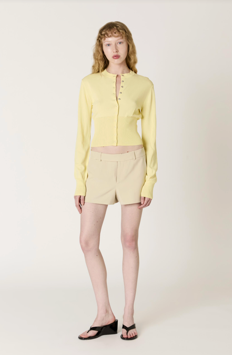 The Lucile Cardigan is a refined knit with a sleek, body-hugging fit and subtle stretch. Designed with a rounded crew neckline and cropped hem, it’s finished with a full button-front closure for a clean, tailored look. Fine-gauge knit construction adds softness and structure, making this piece a streamlined staple in any wardrobe.