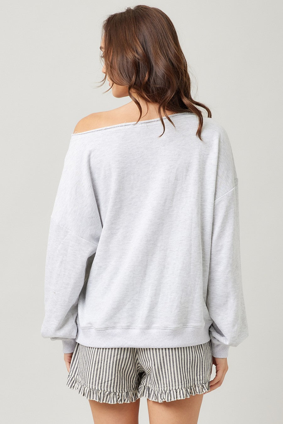 Crafted from soft cotton terry fabric, this long-sleeve top features a relaxed wide neckline for comfortable layering. Its distinctive surfboard patchwork adds a subtle nod to coastal style while maintaining a refined, expert finish suitable for everyday wear.